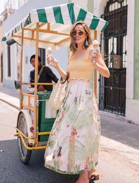 热巴和杨颖都爱的半身裙清新自然,超百搭!杨幂的女人味十足